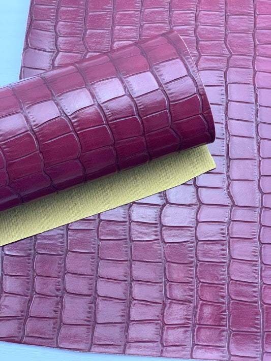 Burgundy Alligator Textured Embossed Faux Leather Sheet