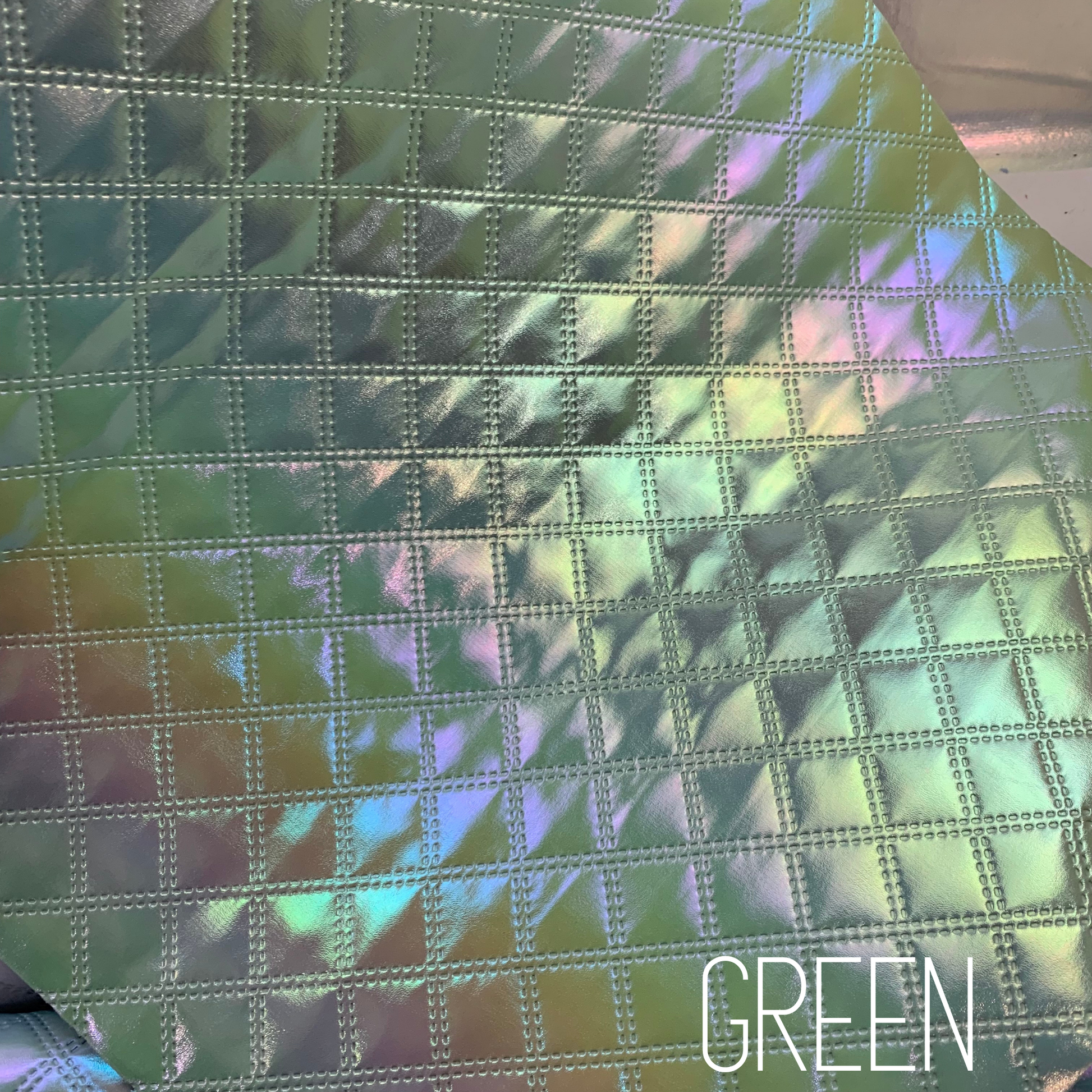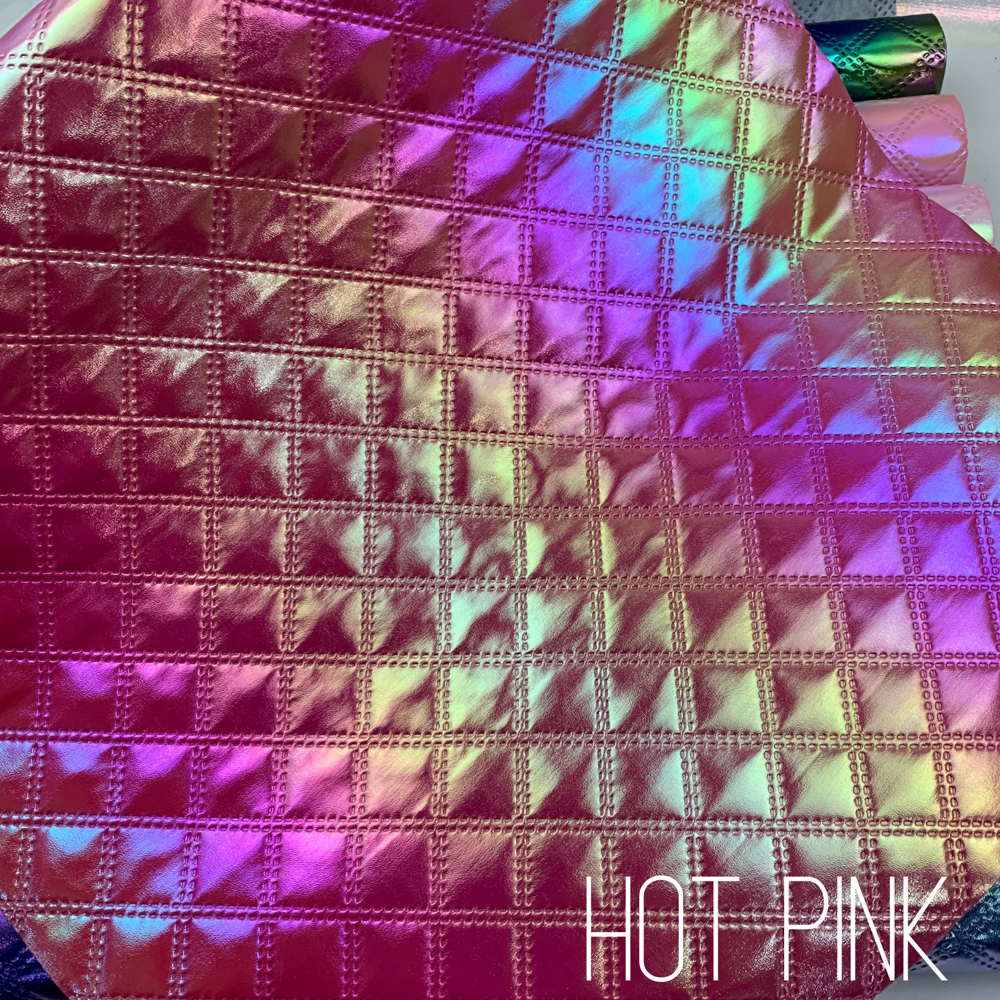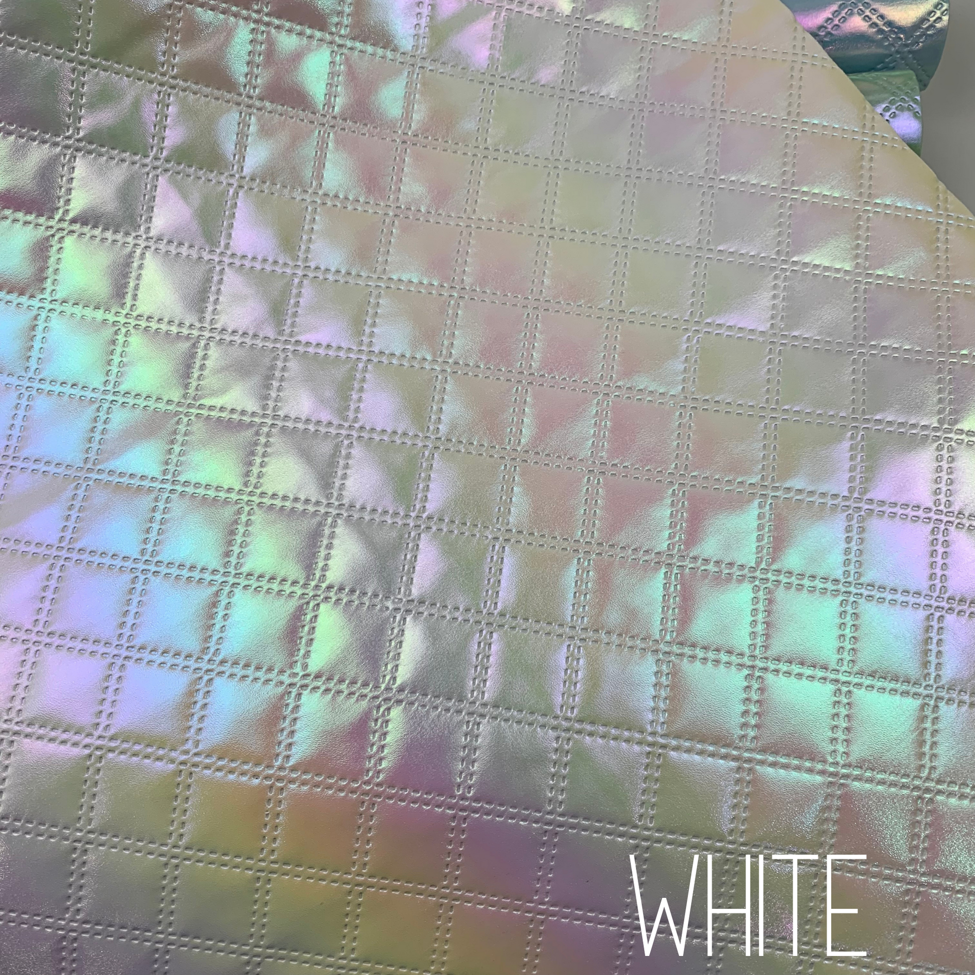 Experience the unique beauty of our Diamond Iridescent Quilted Faux Leather. This product boasts a stunning iridescent effect, perfect for adding dimension and shine to any project. The quilted pattern, achieved through an embossed process, adds a touch of elegance and texture. Perfect for handbags, backpacks, and more.