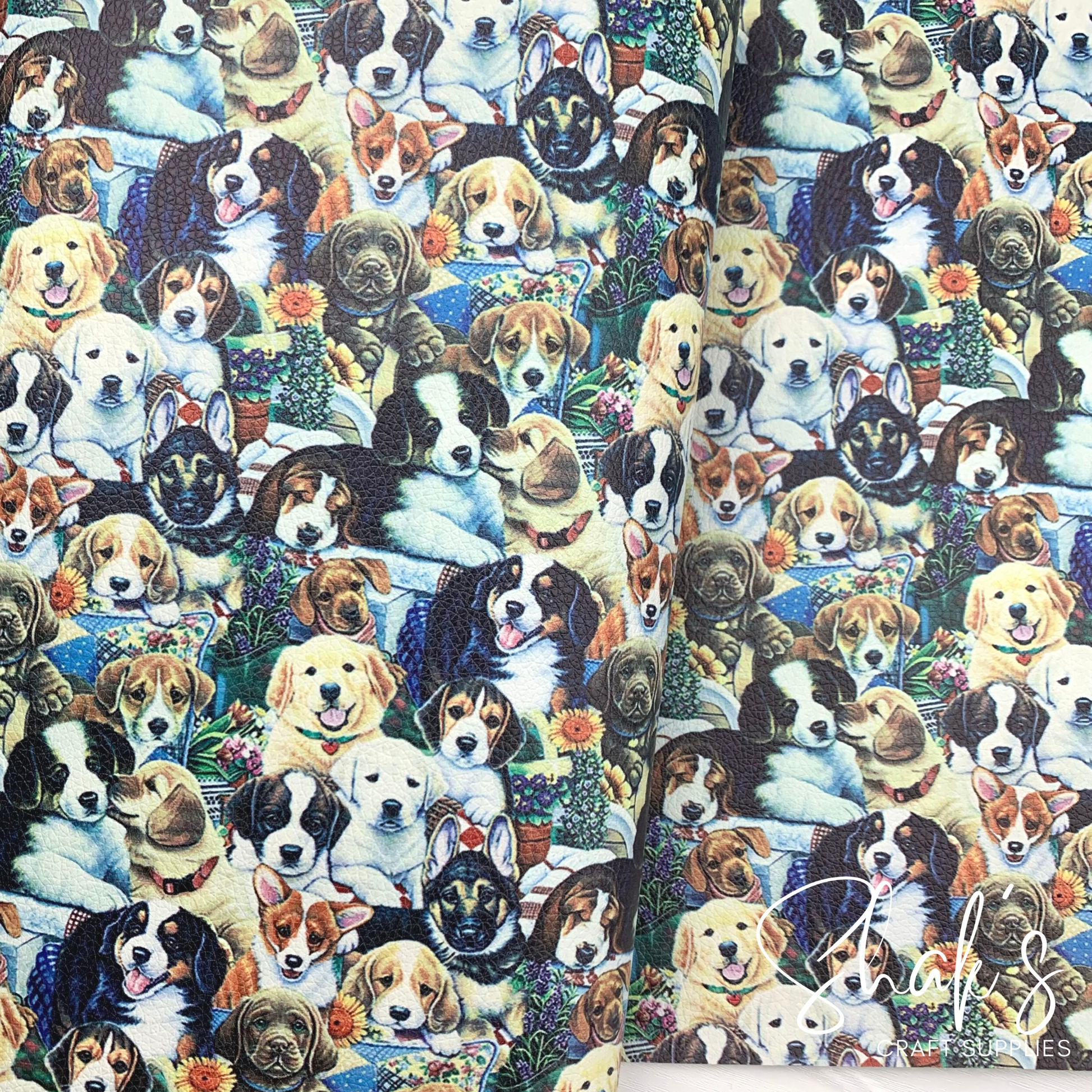 Garden Puppies Classic Puppy Dog Print Vegan Leather Fabric
