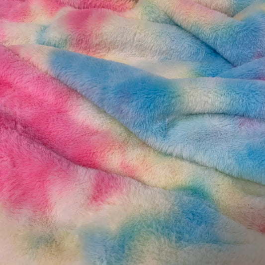 #4 Tie Dye Faux Rabbit Fur Fluffy Plush Two Way Stretch Polyester Fabric SUPER SOFT