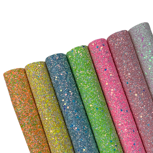 Neon Chunky Glitter Faux Leather Sheet with Soft Polyester Backing