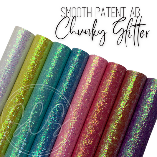 Smooth Patent AB Chunky Glitter Canvas Faux Leather Fabric Sheets