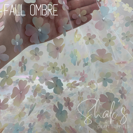 Fall Ombre 3D Flower Embroidery Mesh Two Way Stretch Fabric