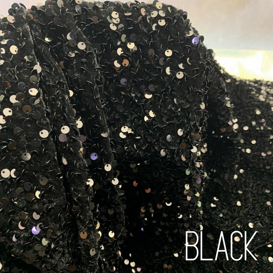 Jazzberry Black Sequin Velvet Four Way Stretch Fabric