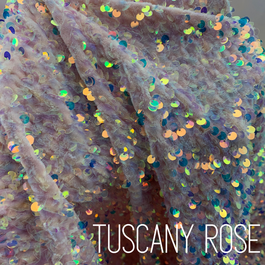 Tuscany Rose Sequin Velvet Four Way Stretch Fabric