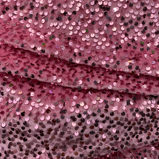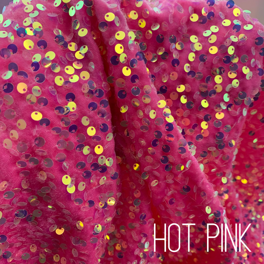 Hot Pink Sequin Velvet Four Way Stretch Fabric