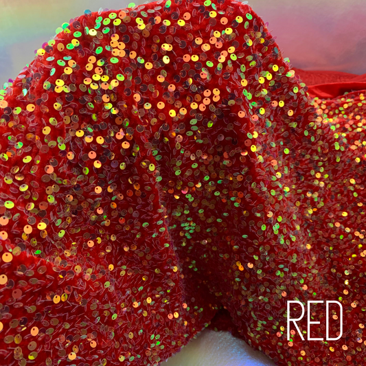 Wine Red Sequin Velvet Four Way Stretch Fabric