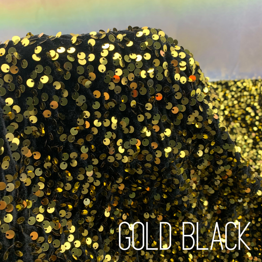 Gold Black Sequin Velvet Four Way Stretch Fabric