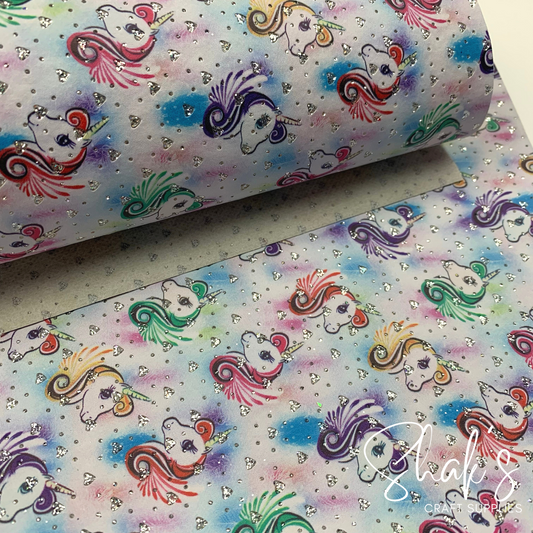 Unicorn Embossed Glitter Hearts Print Vegan Leather Sheet