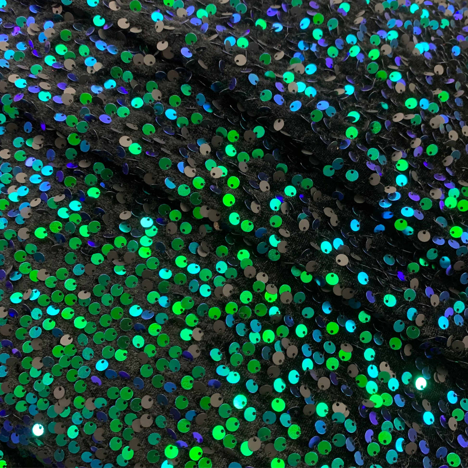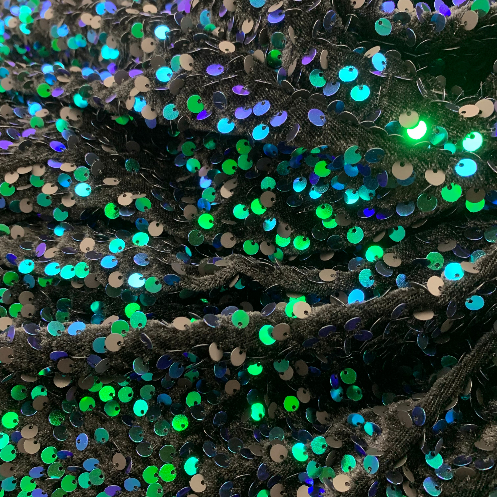 Blue Chameleon Sequin Velvet Four Way Stretch Fabric