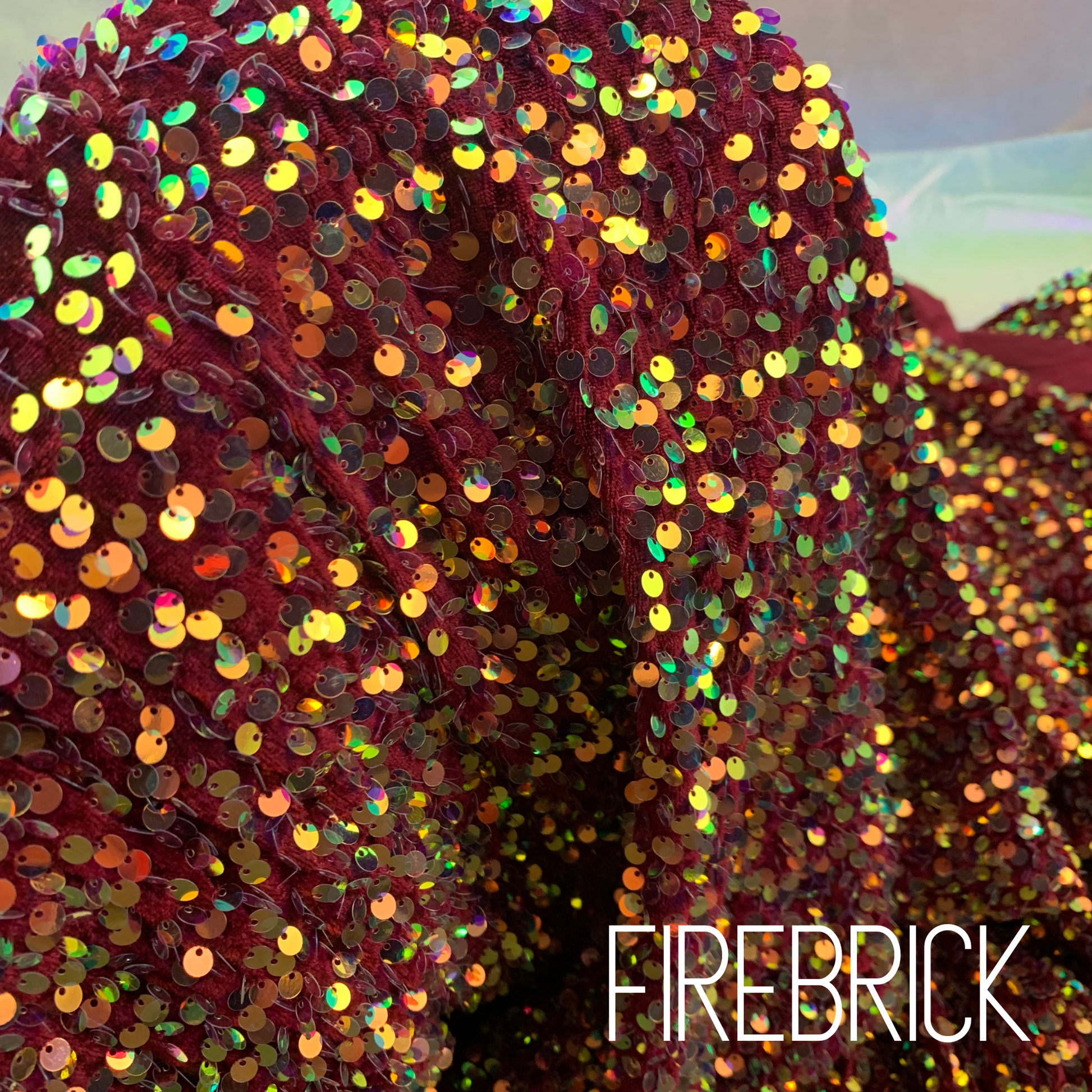 Firebrick Sequin Velvet Four Way Stretch Fabric