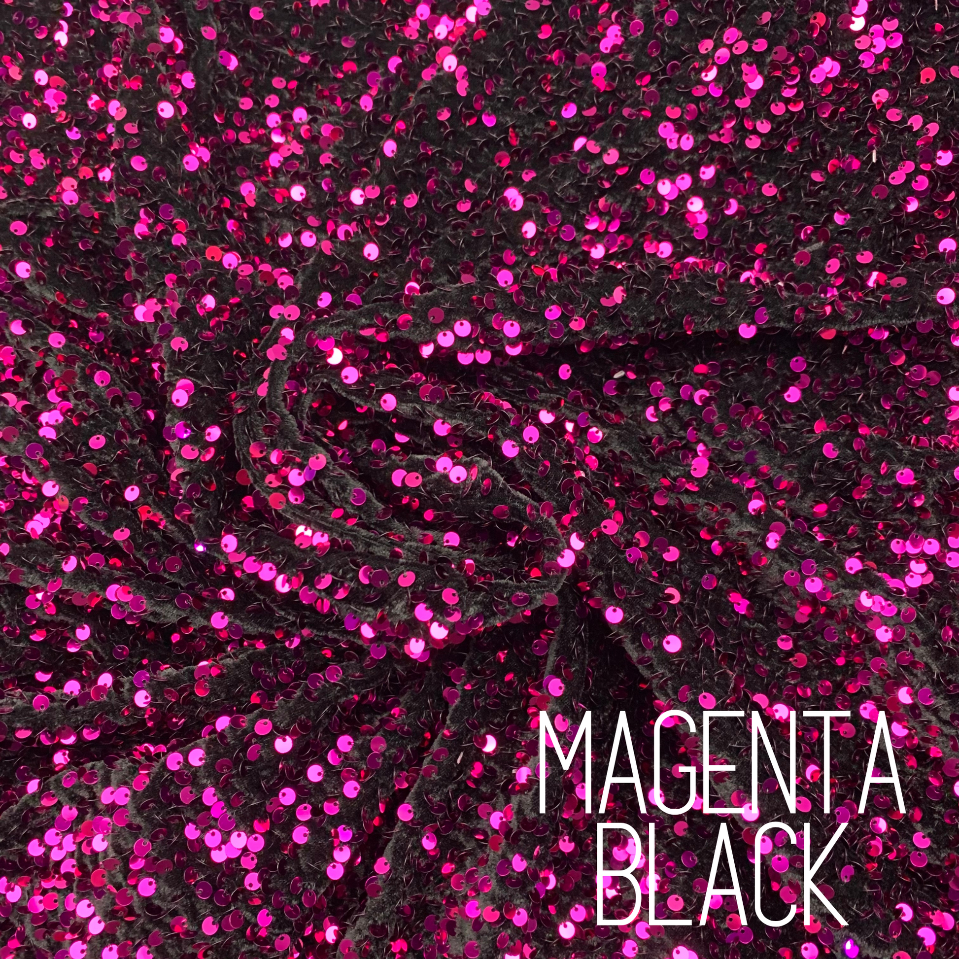 Magenta Black Sequin Velvet Four Way Stretch Fabric