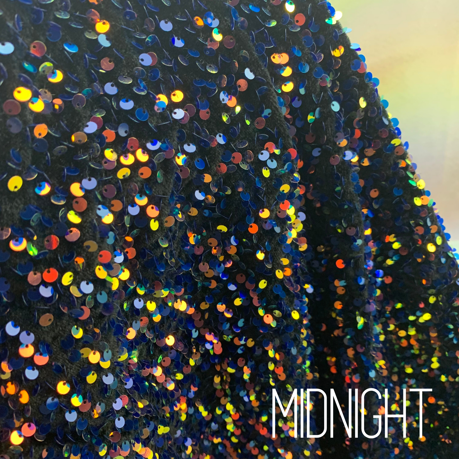 Midnight Sequin Velvet Four Way Stretch Fabric