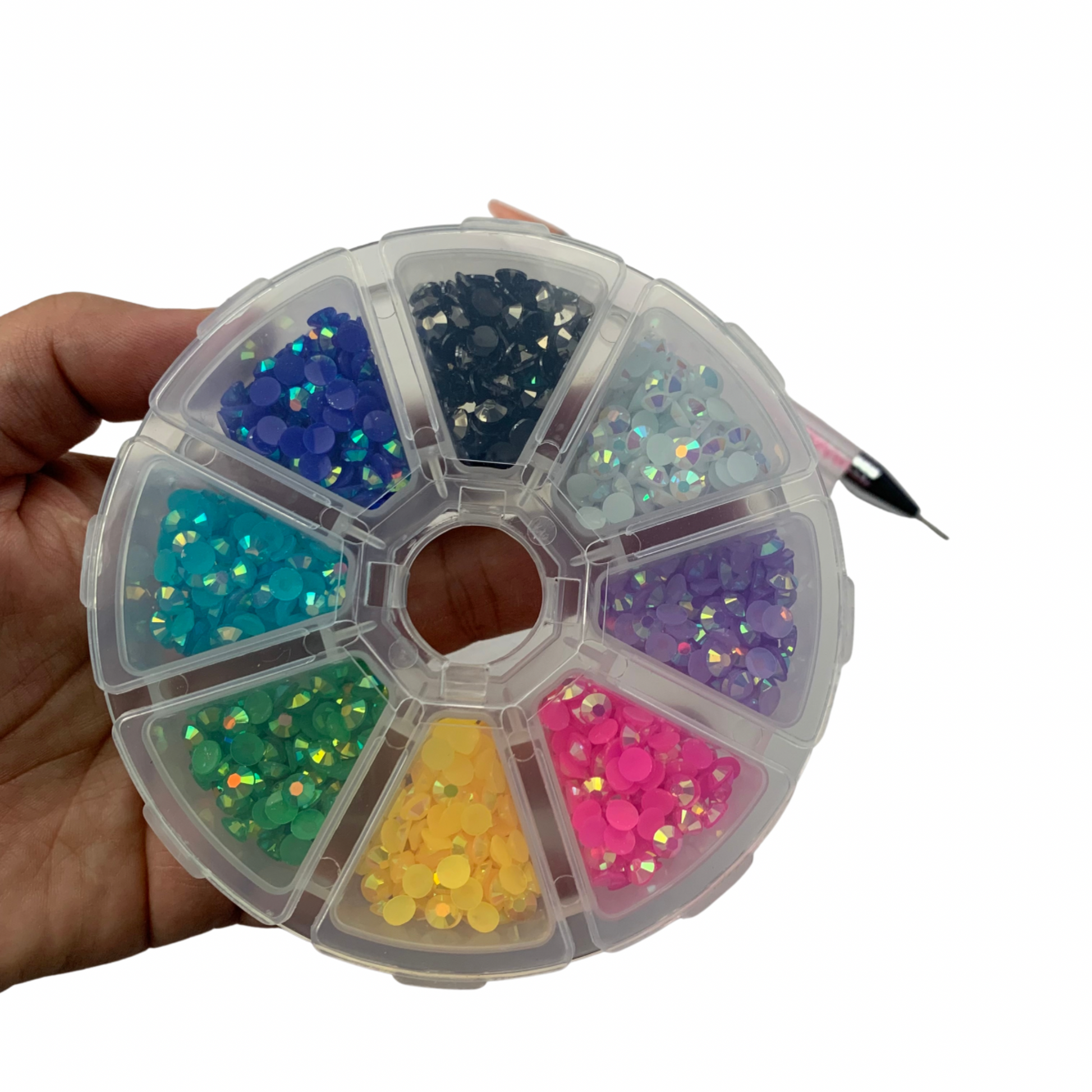 Mini Bling Box | Resin Rhinestones 8 Colors AB Jelly Flatbacks | Non Hot Fix