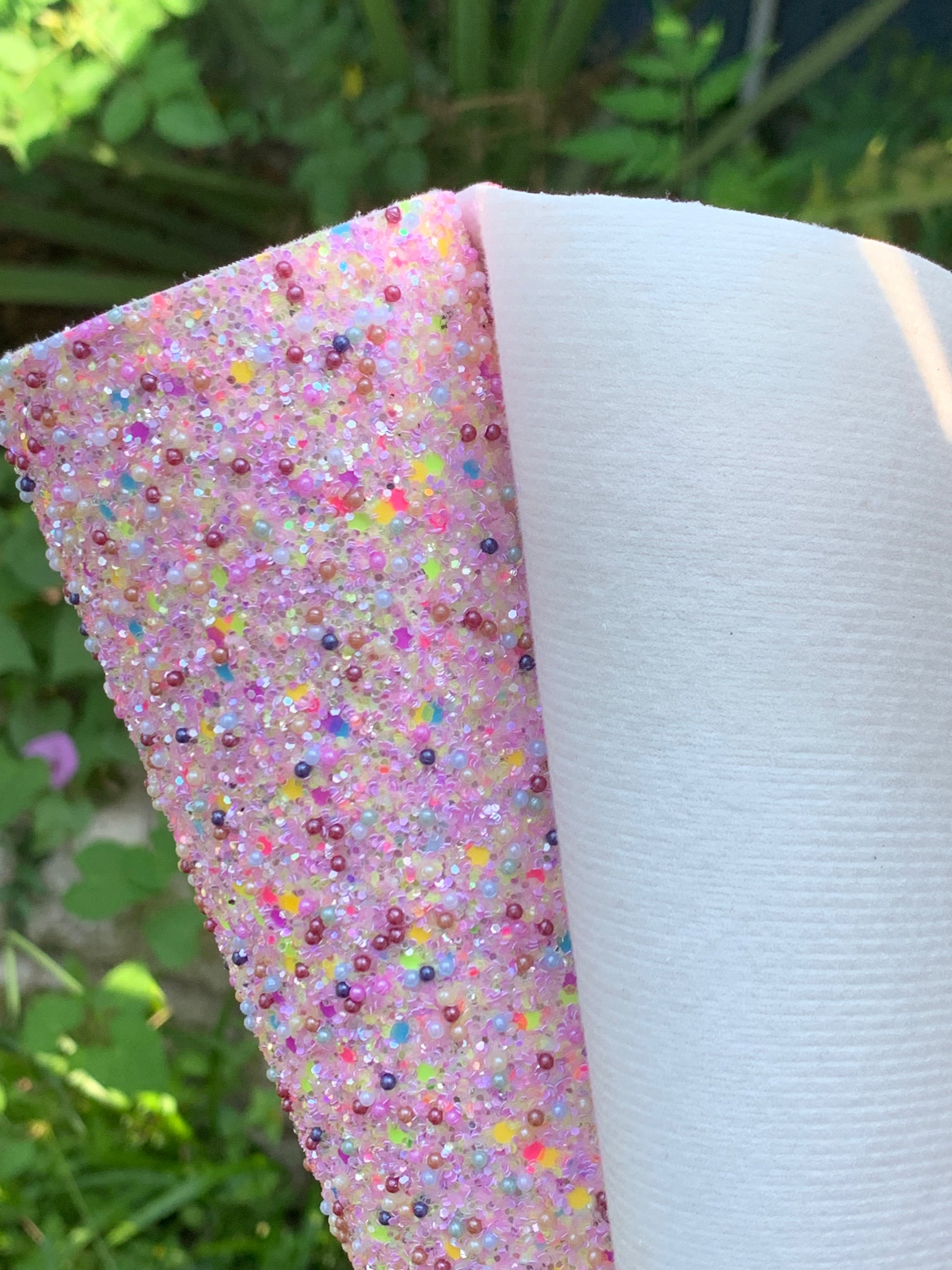 TYPE: Premium Mixed Sequin and Pearls Chunky Glitter with soft felt backing