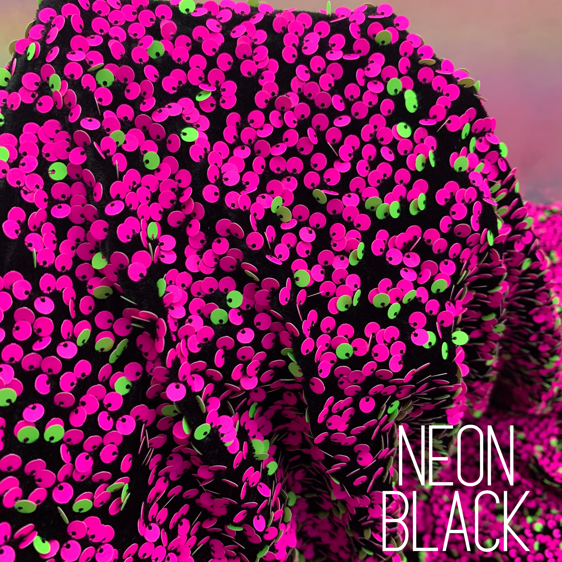 Neon Black Sequin Velvet Four Way Stretch Fabric