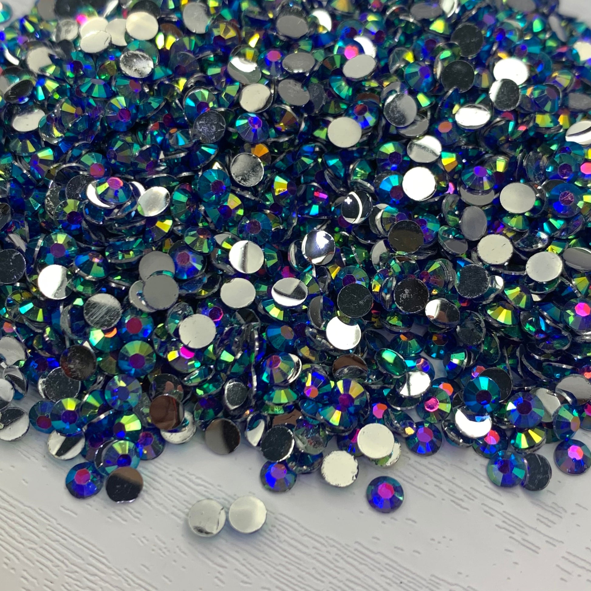 Sapphire AB | Premium Silver Bottom Resin Rhinestones | Non Hotfix | 3mm, 4mm or 5mm | Flatback
