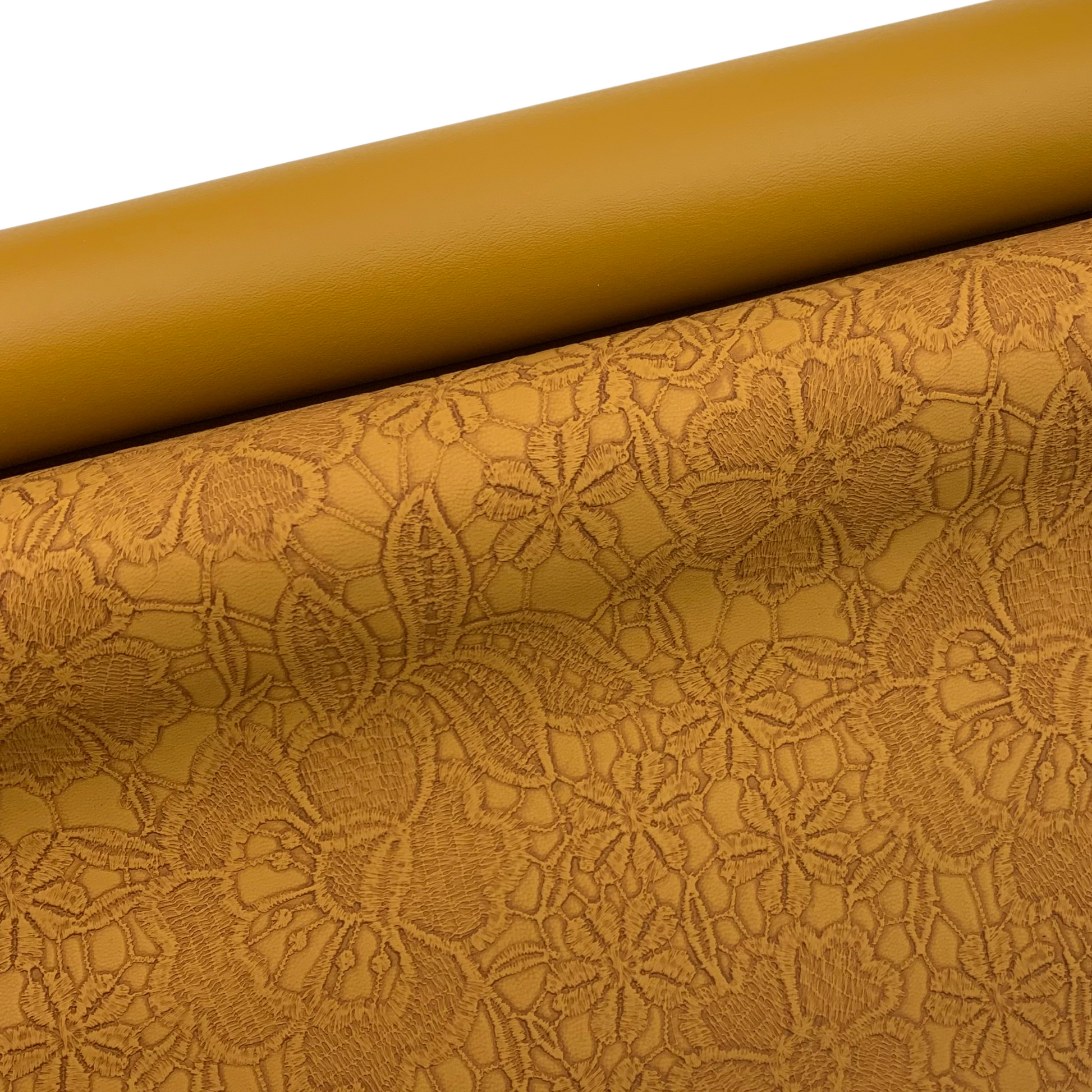 TURMERIC "Embossed Blooms" Faux Leather Half Yard Roll