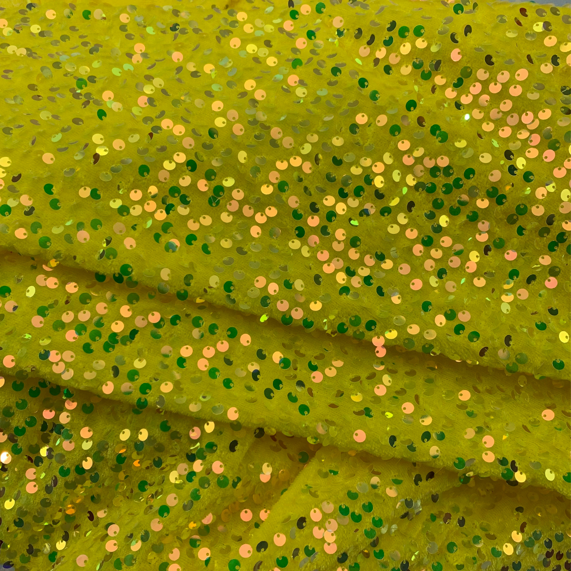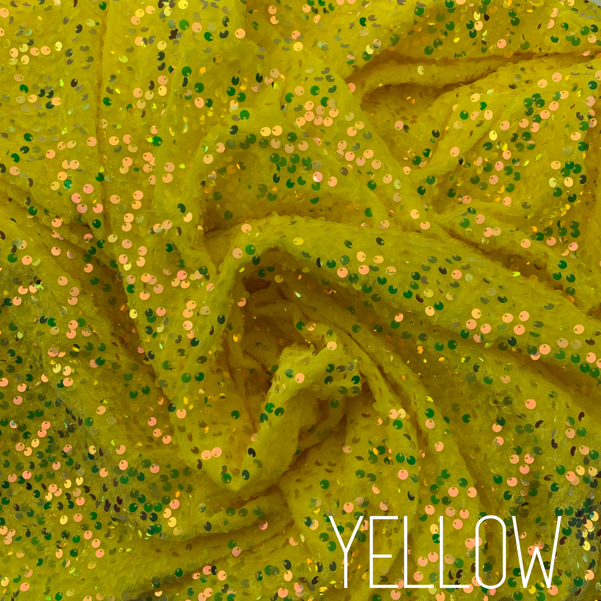 Yellow Sequin Velvet Four Way Stretch Fabric
